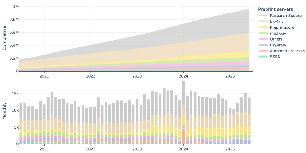 Preprint adoption continues to grow rapidly, enhanced by the COVID-19 pandemic